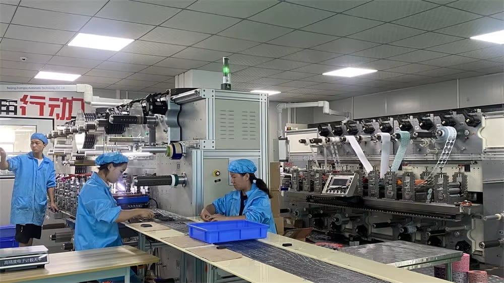 Automated coating ensures uniform 55gsm adhesive distribution.